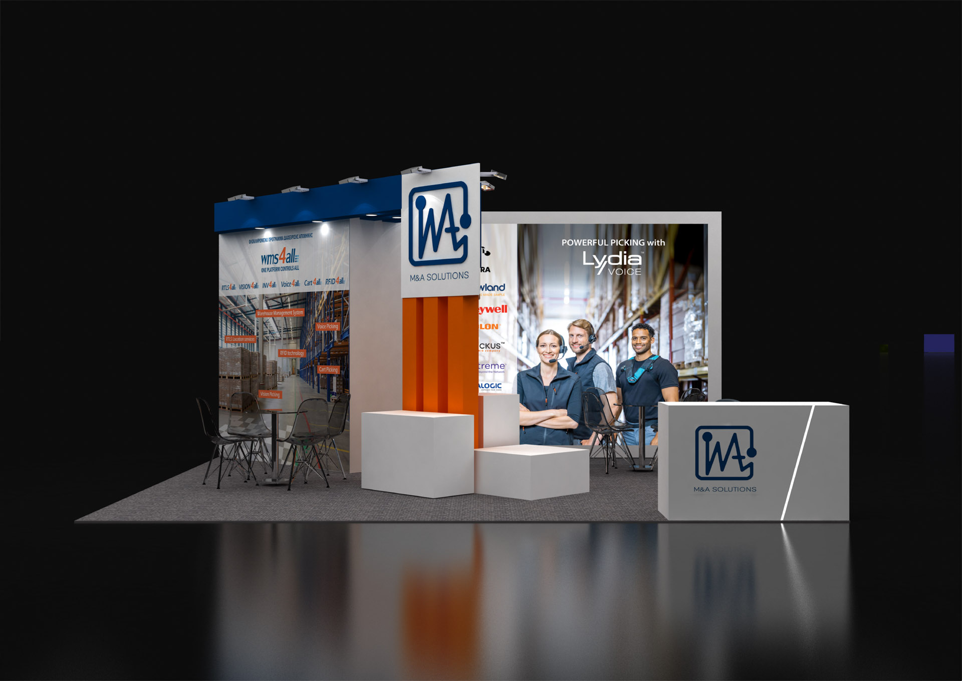 Σταθερά/μοdular στοιχεία, πάγκους υποδοχής, βιτρίνες, κρυφό αποθηκευτικό χώρο, λύσεις δαπέδου, θέσεις για οθόνες και έντονα callouts. Όλα συνδυάζονται ώστε να εξυπηρετούν παρουσιάσεις προϊόντων, δοκιμές και σύντομες συναντήσεις.